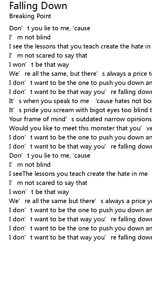 | I don' t want to be that way you' re falling down, you' re falling down again |