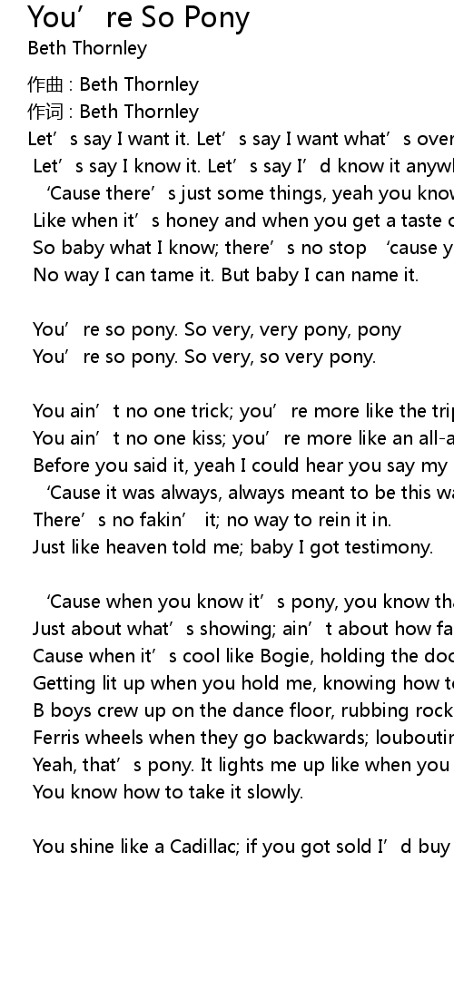 | You' re so pony. So very, very pony, pony | |