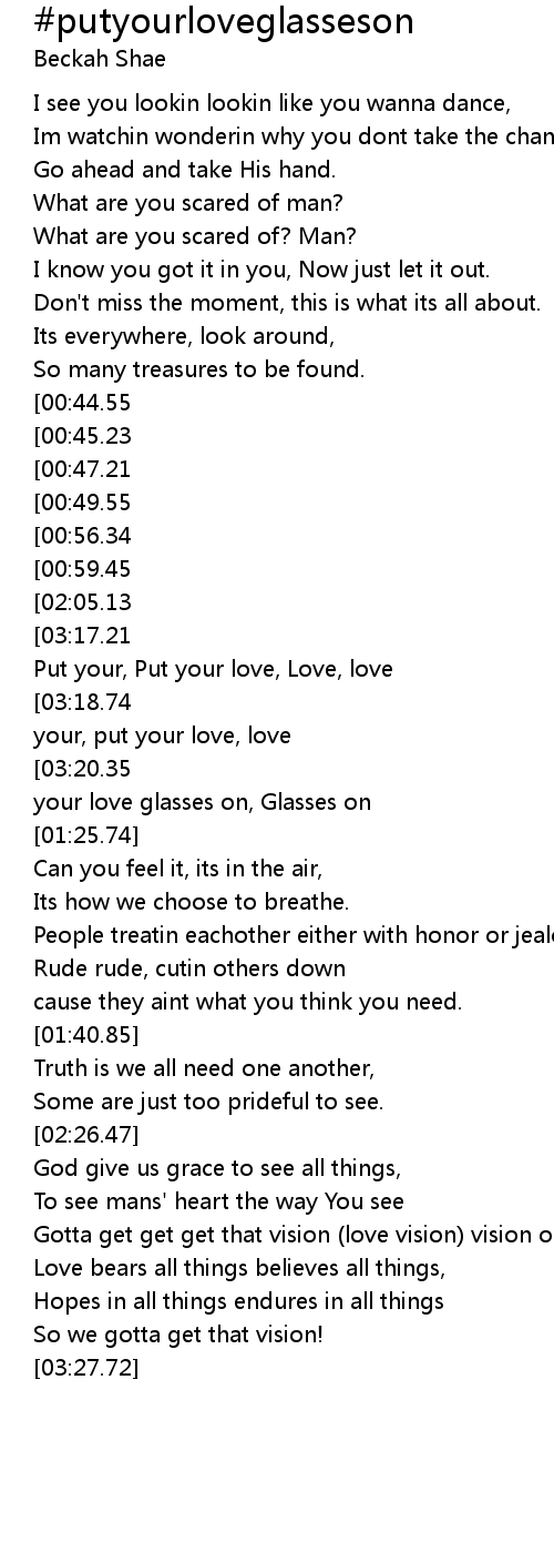 Put your love glasses on, Glasses on |