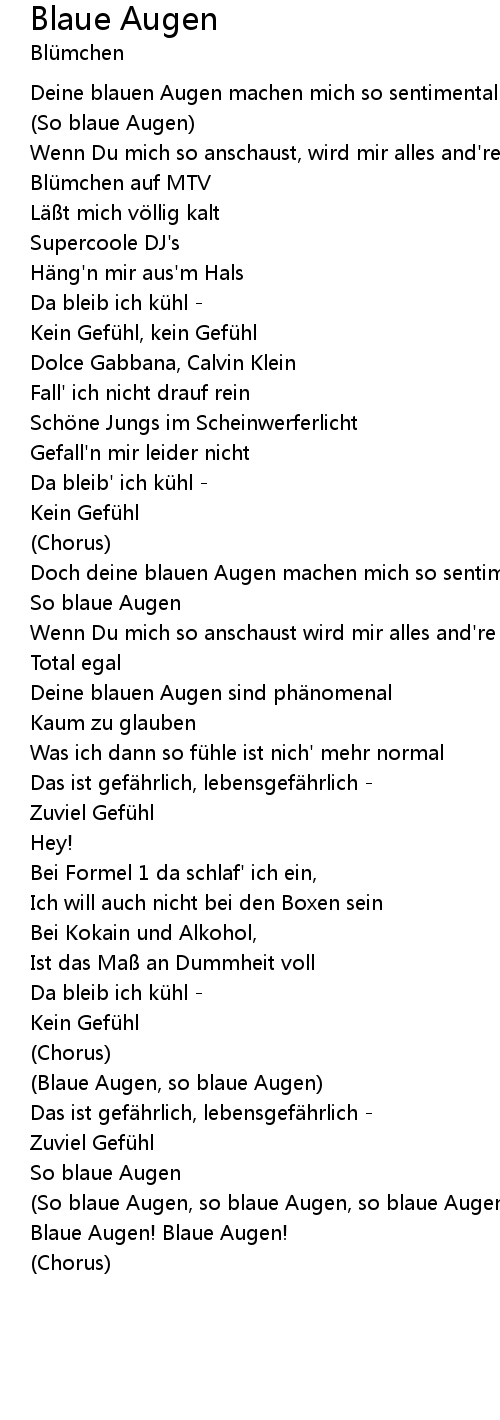 | (So blaue Augen, so blaue Augen, so blaue Augen...) | |