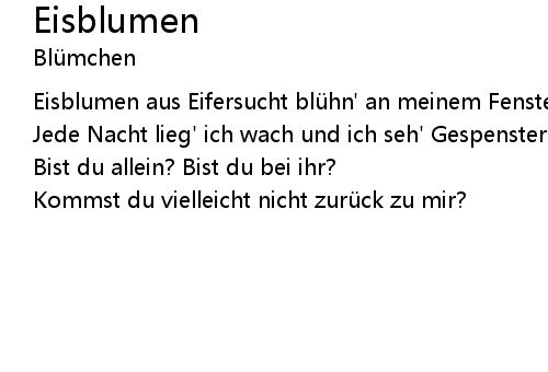 | Eisblumen aus Eifersucht blühn' an meinem Fenster | |