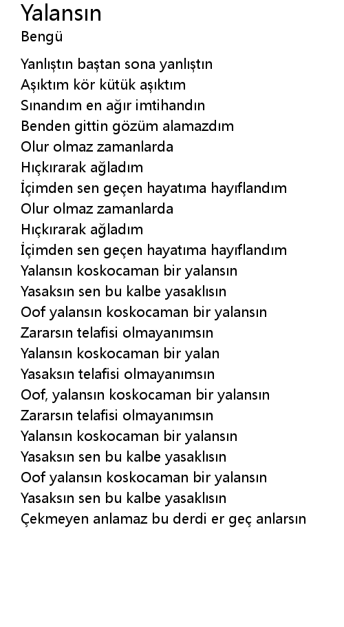 | Oof yalansın koskocaman bir yalansın | |