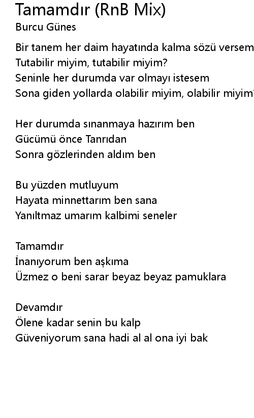 | Song | Tamamdır (RnB Mix) |