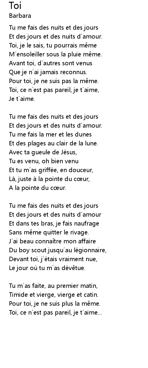 | Toi, ce n est pas pareil, je t aime... |