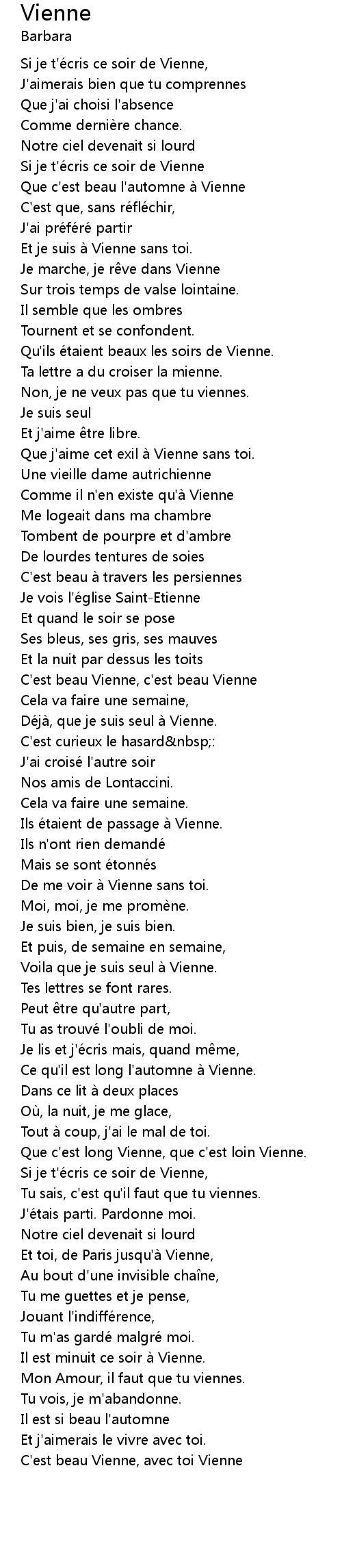 | Et je suis a Vienne sans toi. | |