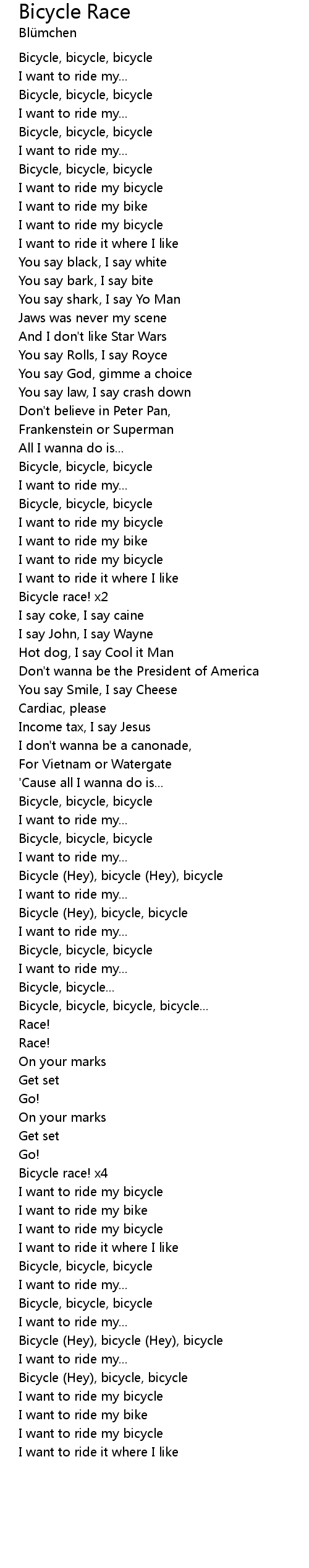 Bicycle (Hey), bicycle (Hey), bicycle |