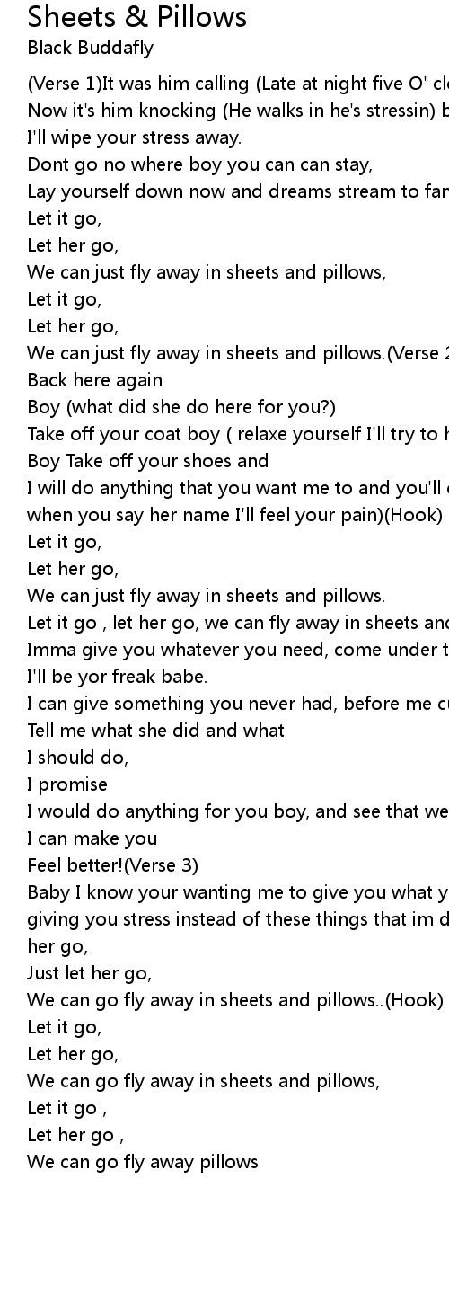 Let it go , let her go, we can fly away in sheets and pillows.(Bridge) |