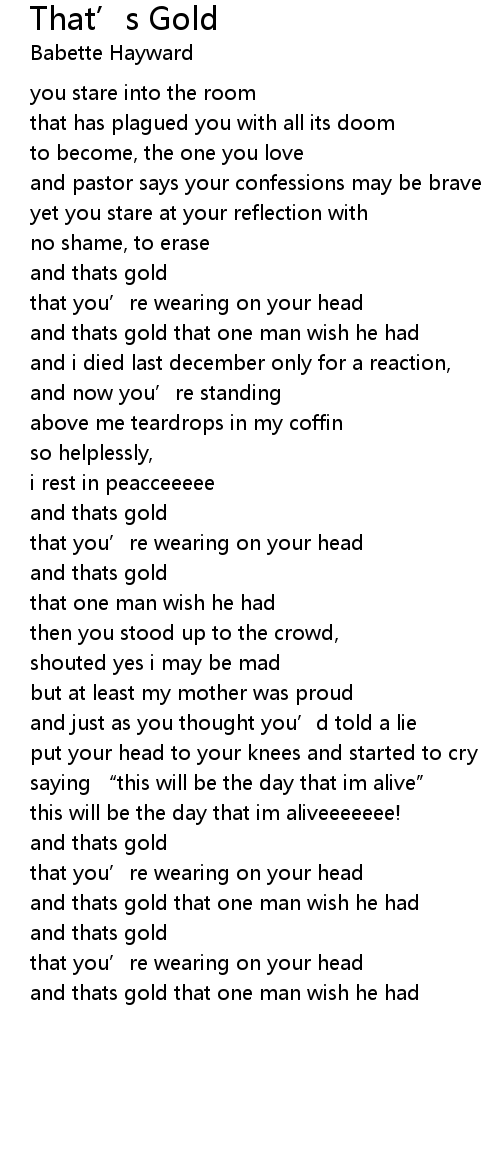 | [02:58.94] | and thats gold that one man wish he had |