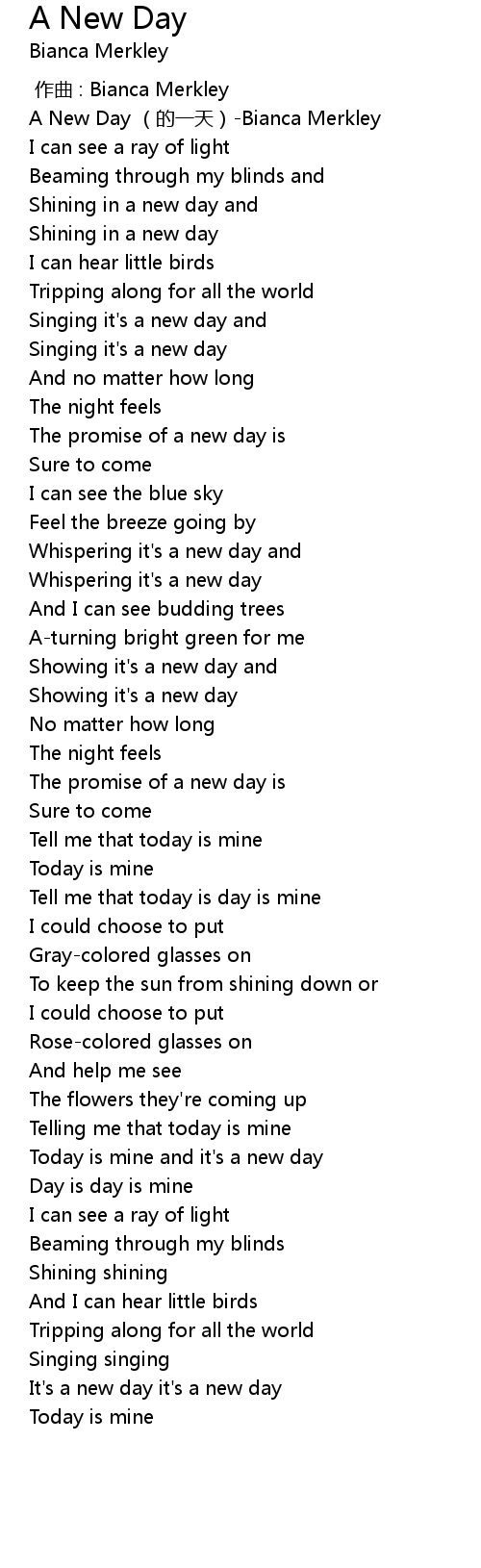 | [00:00.00] | A New Day de yì tiān Bianca Merkley |