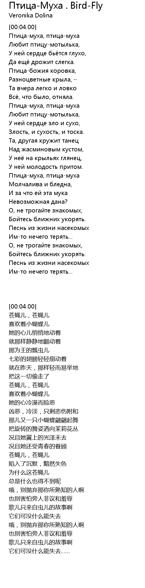 | [00:34.00] | Птица-муха, птица-муха |
