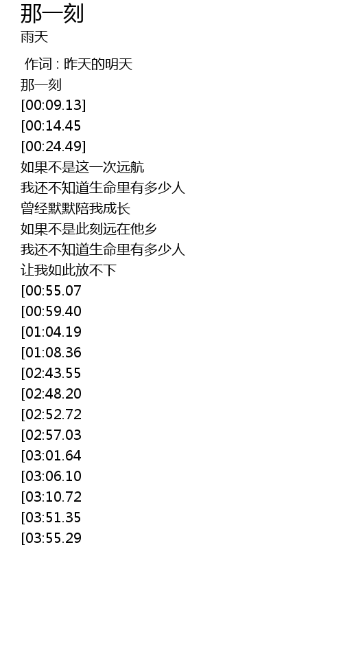 | [03:19.79][02:43.55][01:15.25] | na yi ke wo la xia le yan lei |