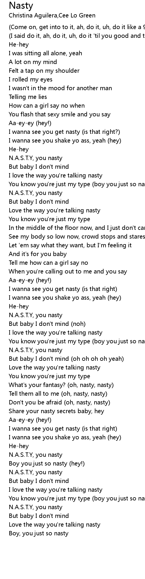 N.A.S.T.Y, you nasty |