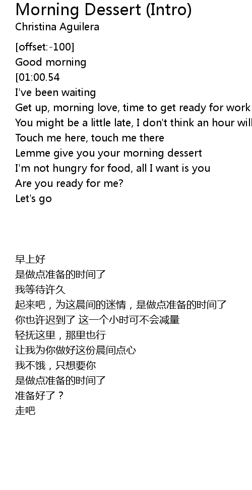 | [00:19.06] | Get up, morning love, time to get ready for work |
