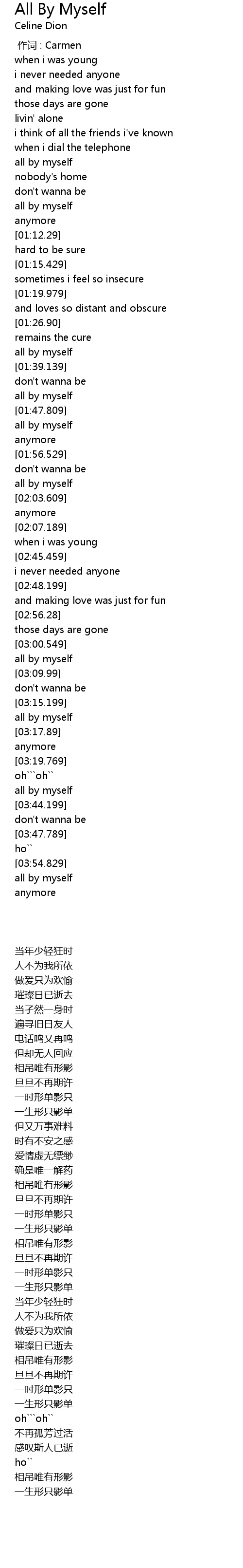 | [03:23.699] | all by myself |