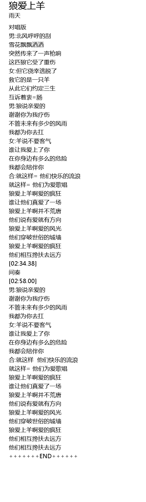| [02:15.63] | 狼爱上羊啊爱的风光 |
