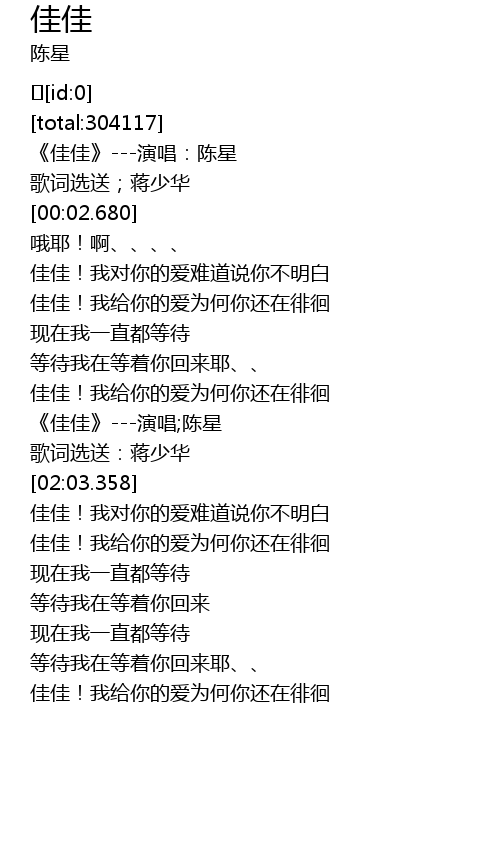 | [00:01.276] | 《佳佳》---演唱:陈星 |