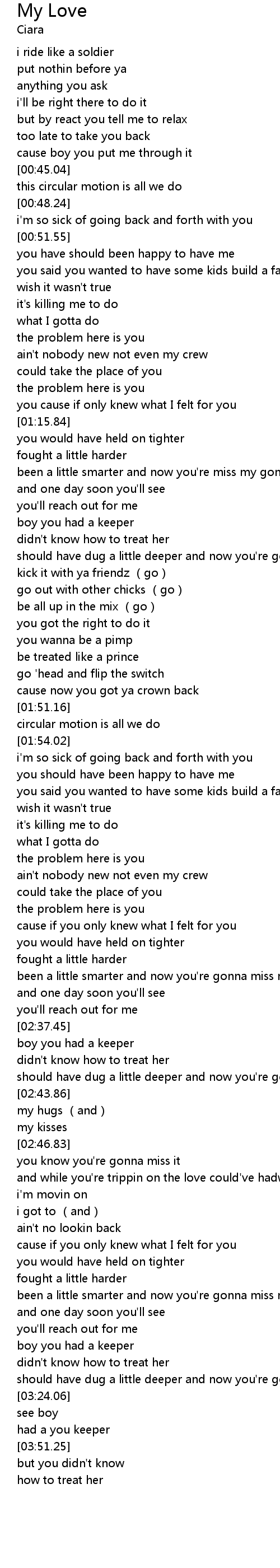 | [01:34.36] | should have dug a little deeper and now you' re gonna miss my love |