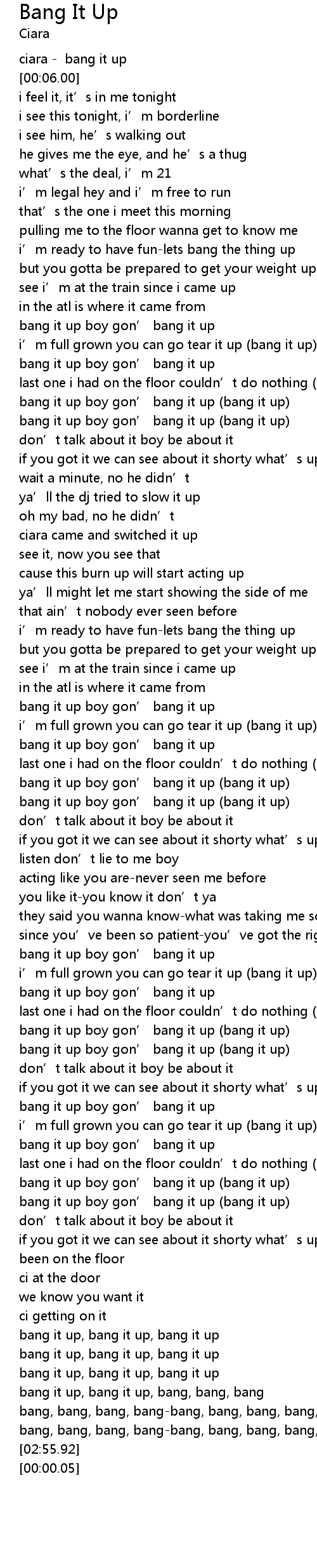 | [00:04.00] | ciara bang it up |