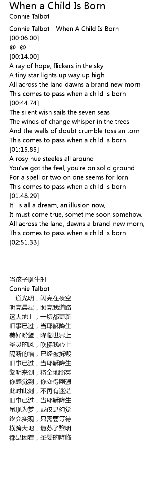 | [00:02.00] | Connie Talbot - When A Child Is Born |