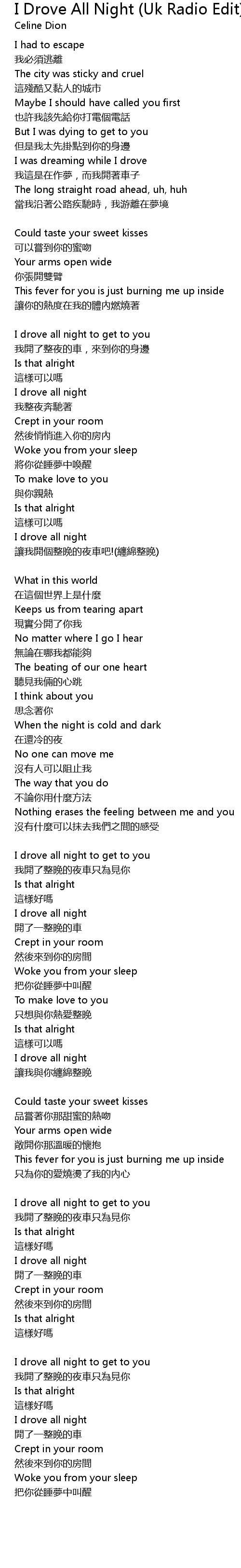 | I drove all night | |