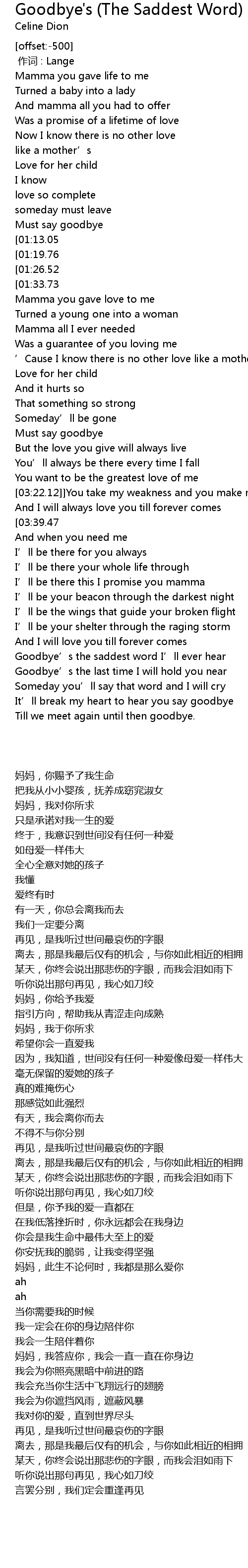 | [02:36.69][01:13.05] | Goodbye’s the saddest word I’ll ever hear |