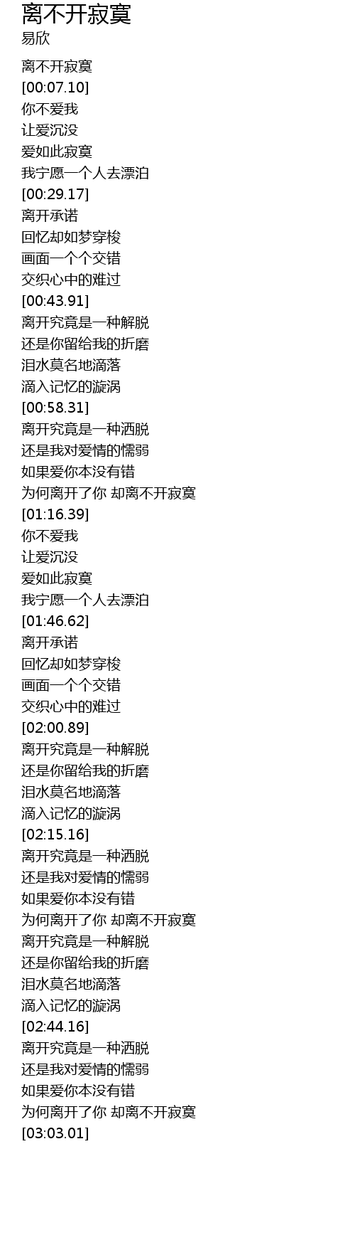 | [02:25.89] | wèi hé lí kāi le nǐ què lí bù kāi jì mò |