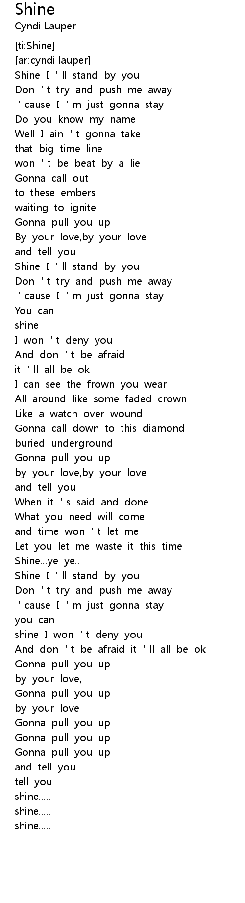 | [00:14.85] | Shine I ll stand by you |