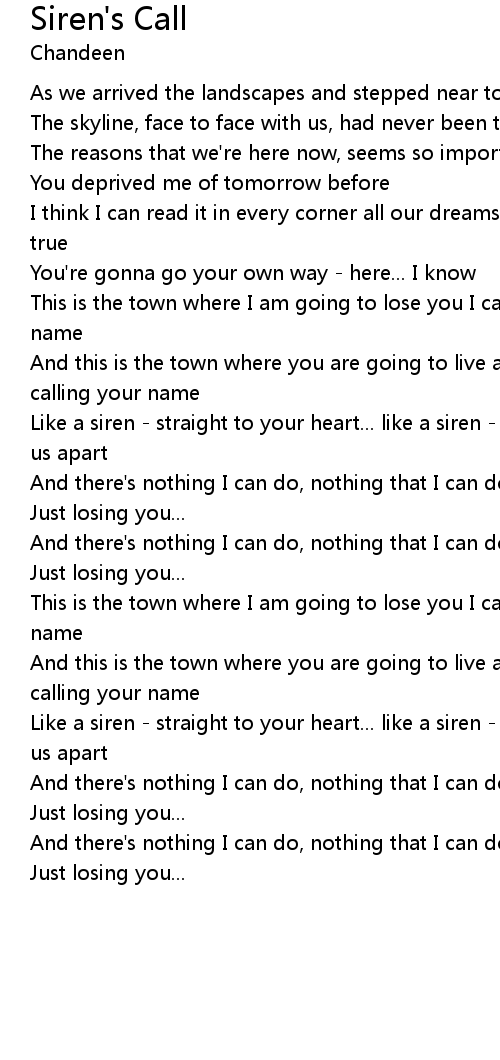 Like a siren - straight to your heart... like a siren - and I know it will tear us apart