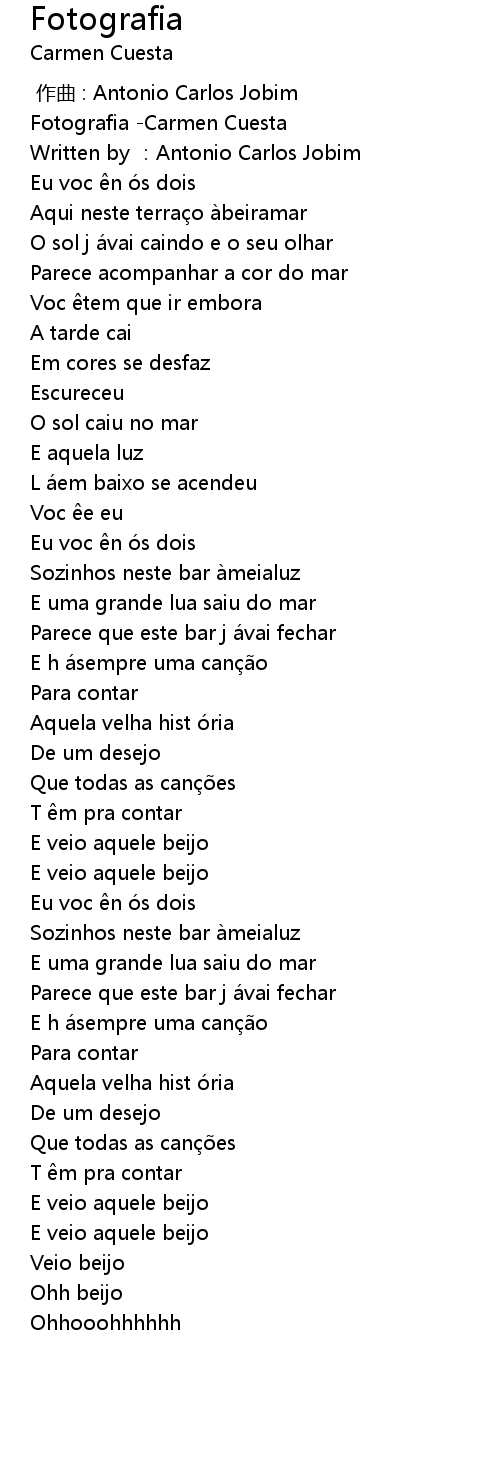 | [00:00.836] | Written by :Antonio Carlos Jobim |