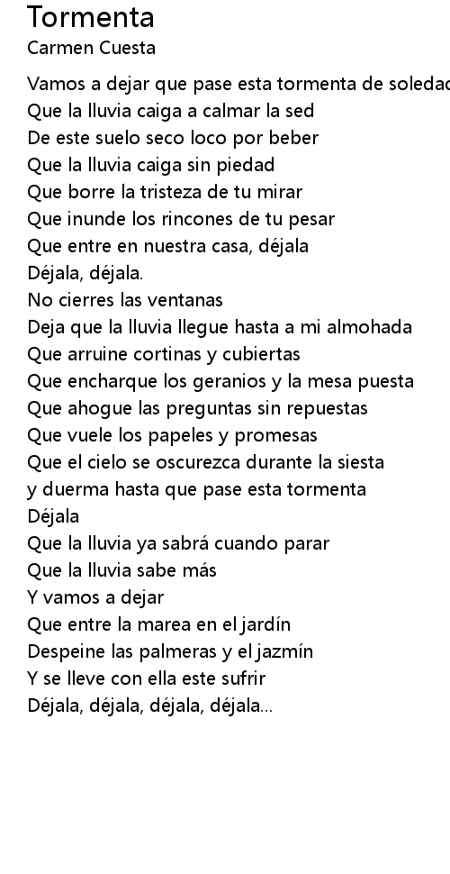 | Vamos a dejar que pase esta tormenta de soledad | |