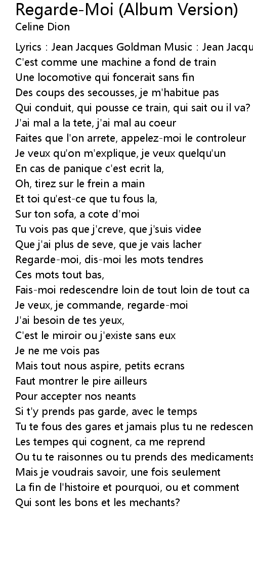 | Song | Regarde-Moi (Album Version) |