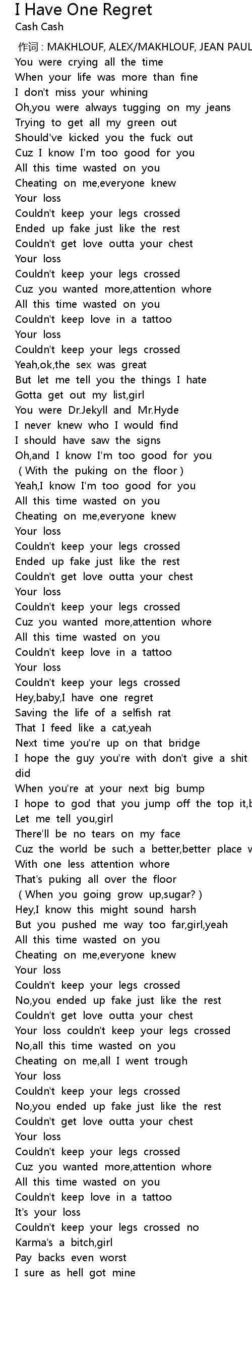 | [02:55.72] | With one less attention whore |