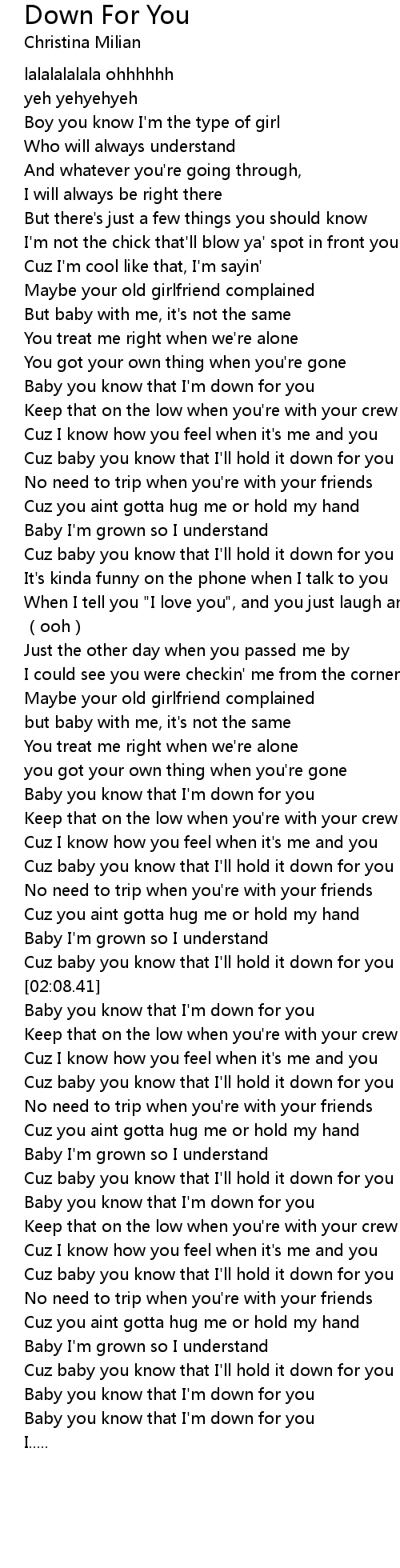 | [02:04.88] | Cuz baby you know that I'll hold it down for you |