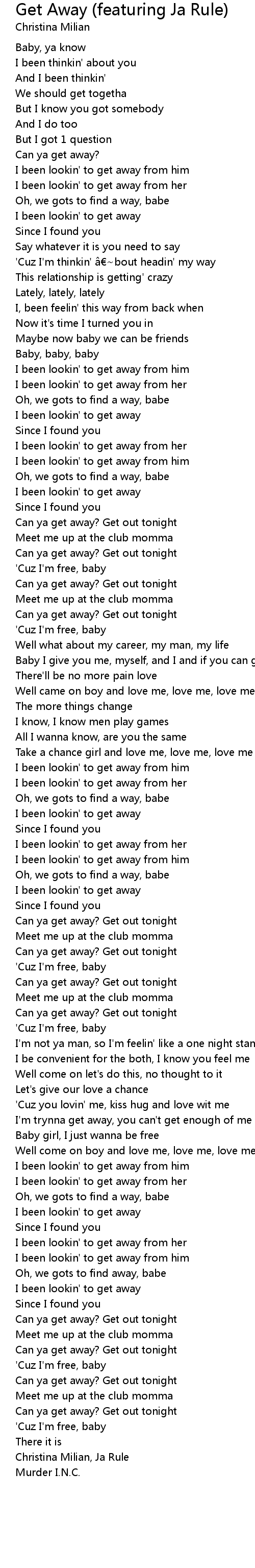 | Song | Get Away (featuring Ja Rule) |