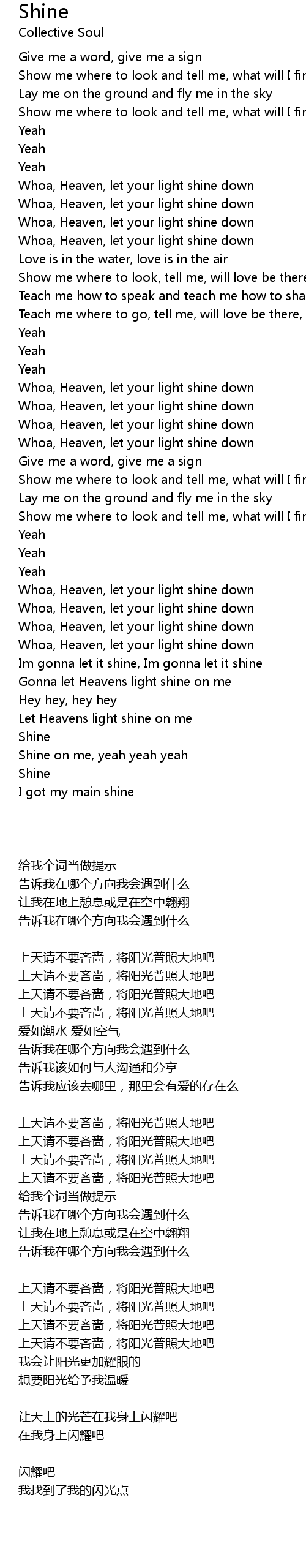 Whoa, Heaven, let your light shine down |