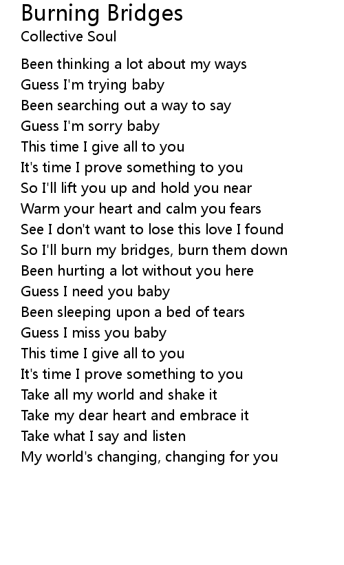 So I'll burn my bridges, burn them down |