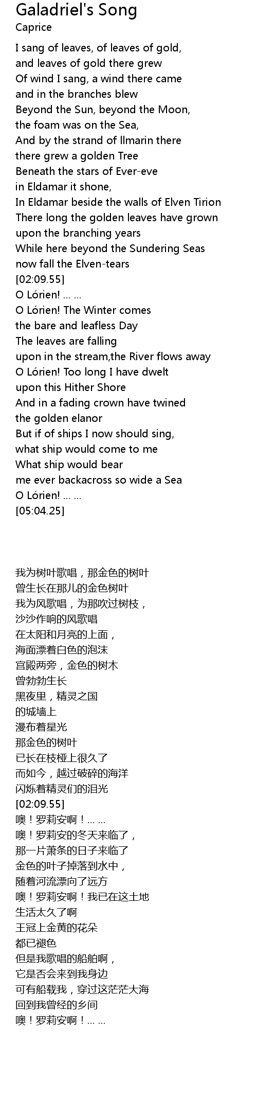 | [03:27.31] | O Lo rien! Too long I have dwelt |