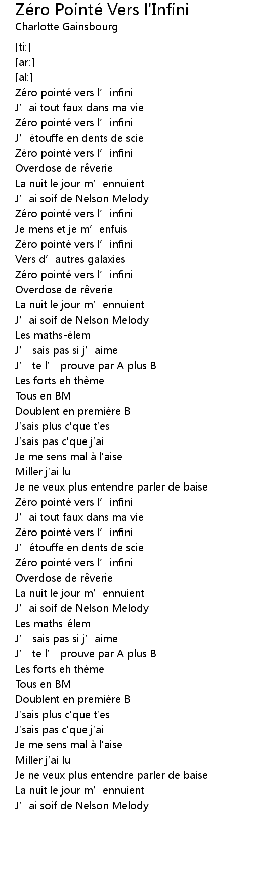 | [02:07.44] | Ze ro pointe vers l' infini |