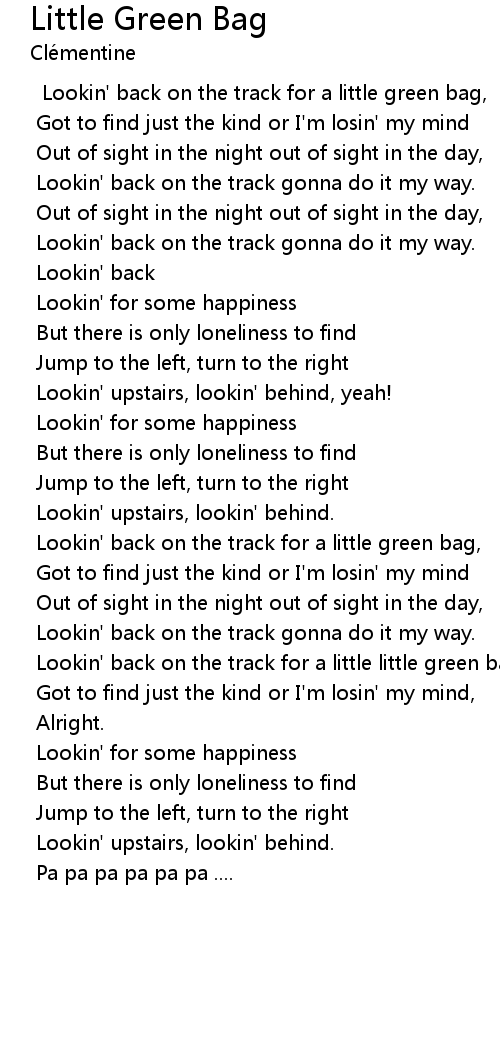 Lookin' back on the track for a little little green bag, |