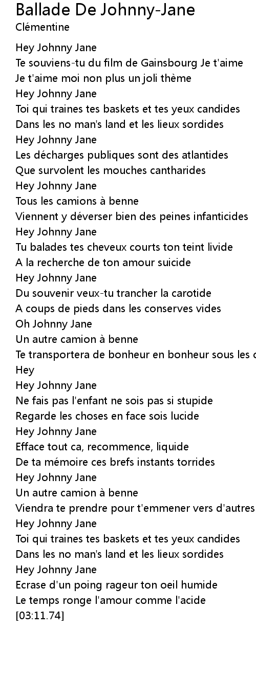 | Song | Ballade De Johnny-Jane |