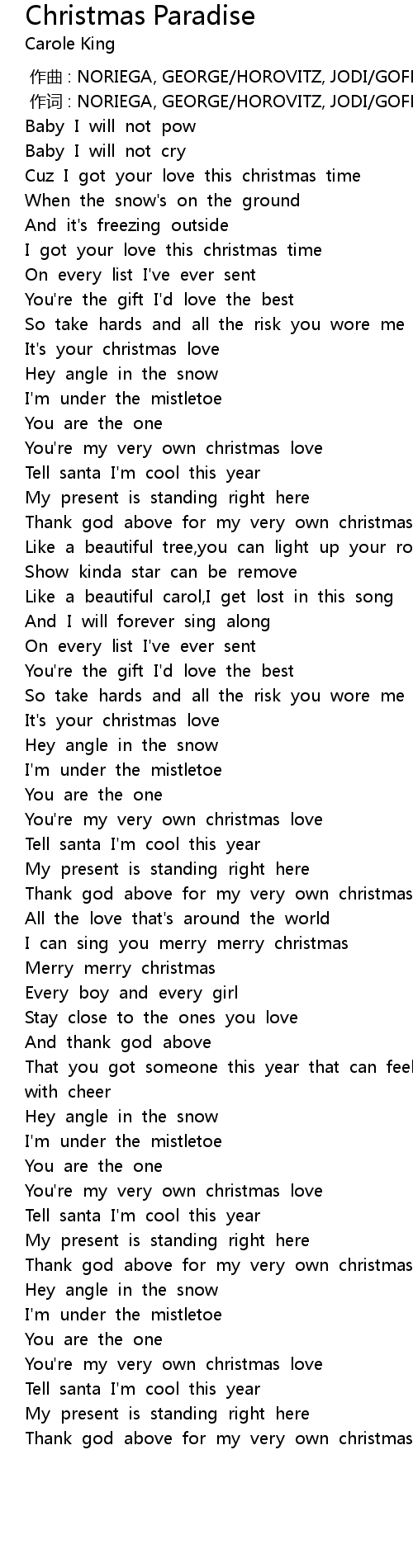 | [00:01.00] | 作词 : NORIEGA, GEORGE/HOROVITZ, JODI/GOFFI |