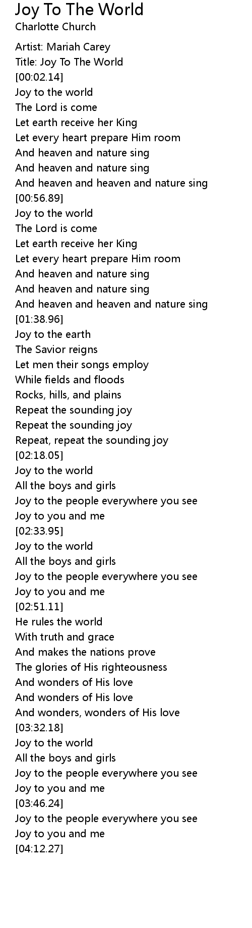 Title: Joy To The World |