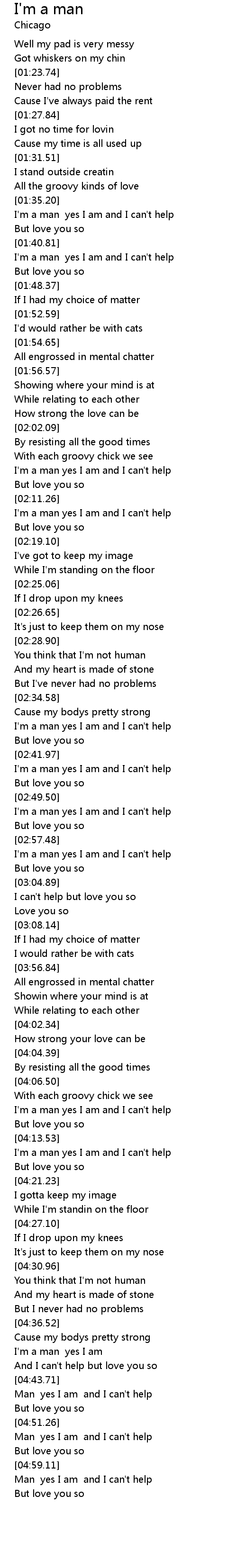 I'm a man yes I am and I can't help |