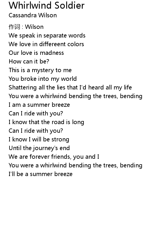| Song | Whirlwind Soldier |