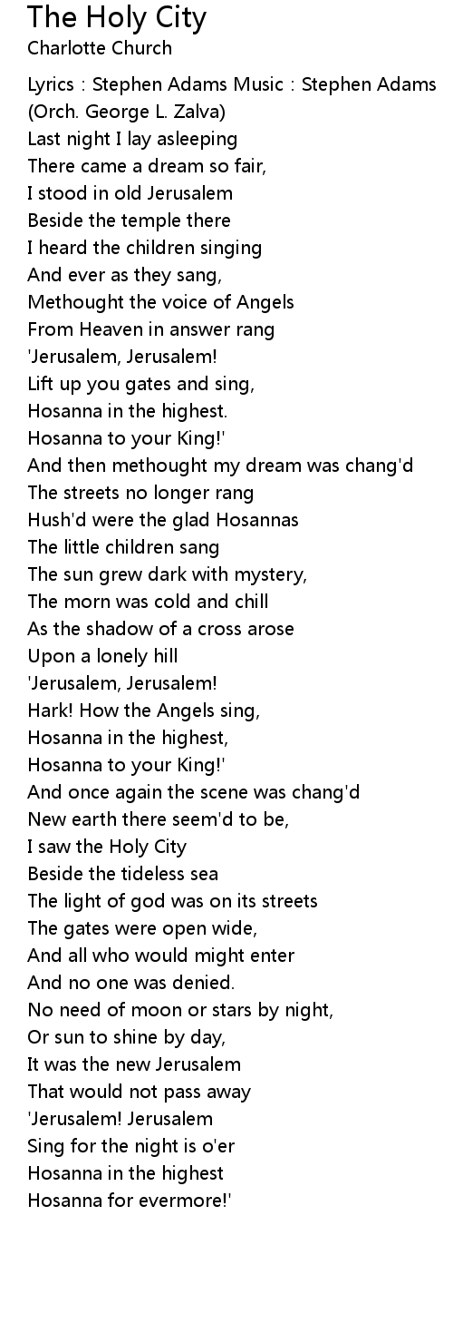 | Song | The Holy City |