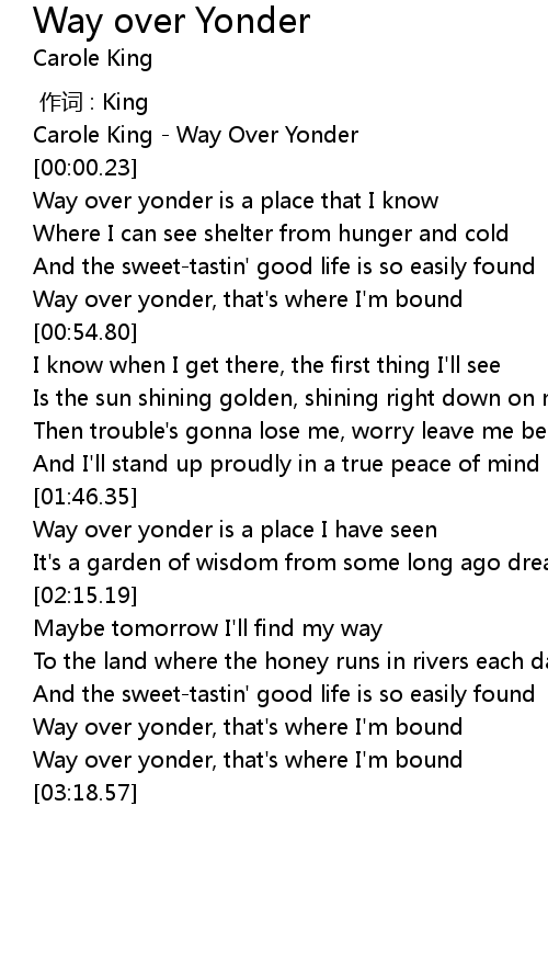| [00:00.00] | Carole King - Way Over Yonder |