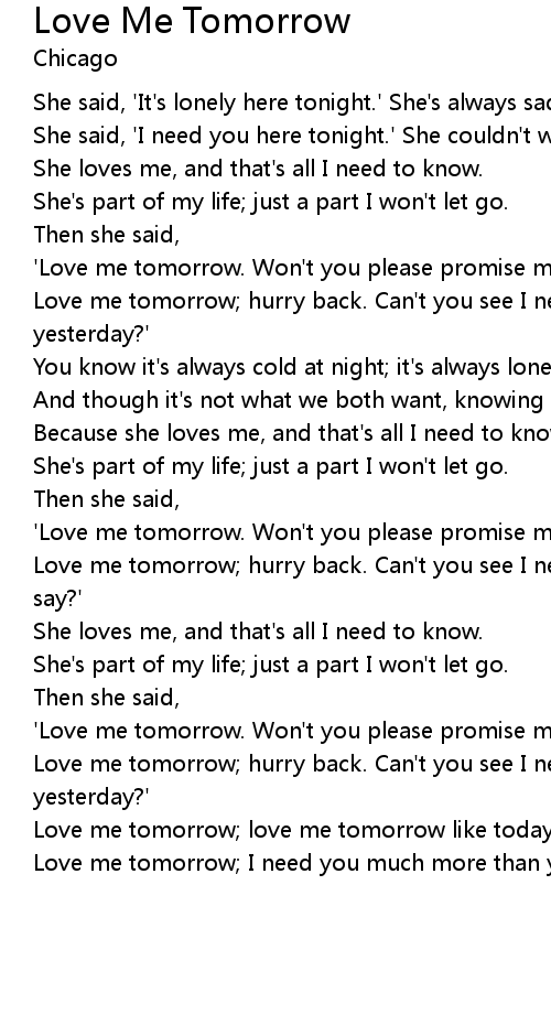 'Love me tomorrow. Won't you please promise me? Love me tomorrow like today. |