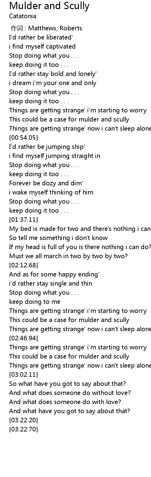 | [00:42.94] | This could be a case for mulder and scully |