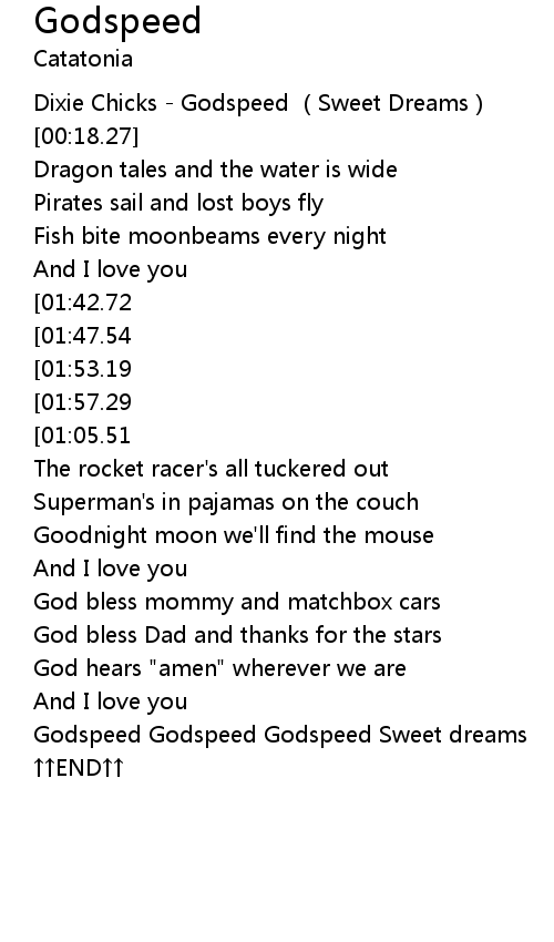 | [03:32.63] | Godspeed Godspeed Godspeed Sweet dreams |