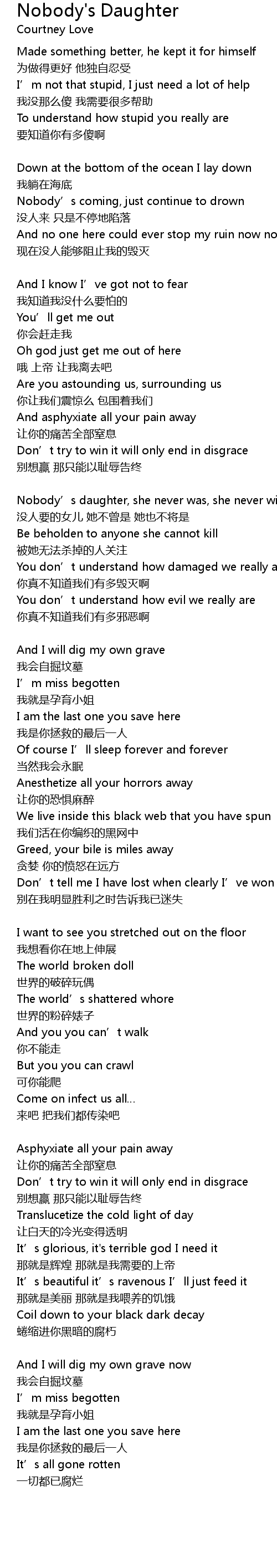 | Nobody’s daughter, she never was, she never will | |